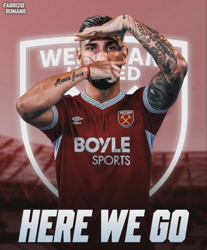 罗马诺发推:塔蒂-卡斯特利亚诺斯即将加盟西汉姆,here we go!