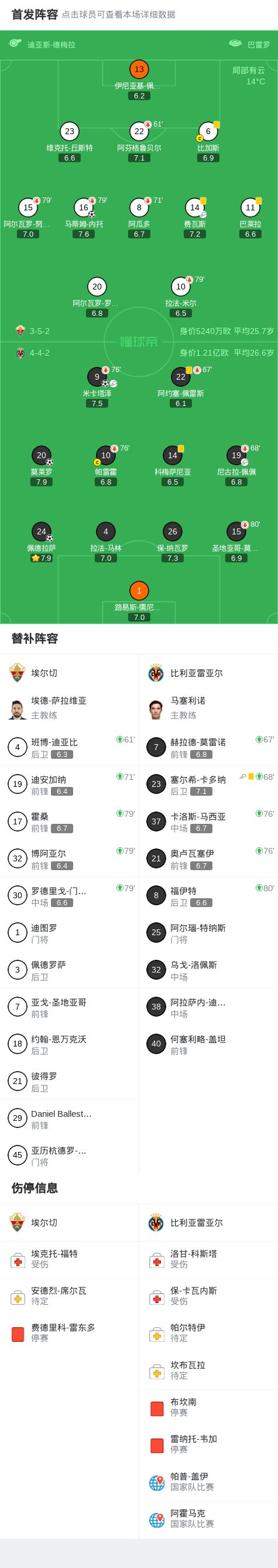 比利亚雷亚尔3-1埃尔切,佩德拉萨、米卡塔泽破门