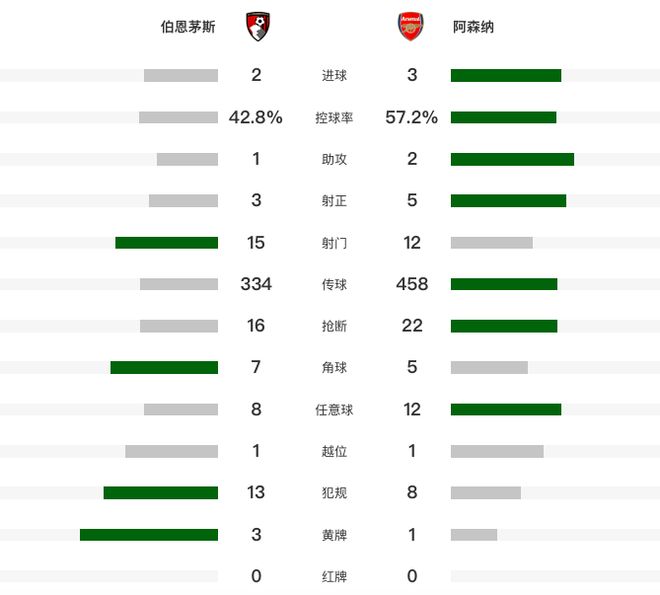阿森纳各项赛事豪取7连胜,英超则是5连胜。20轮后积48分,在曼城本轮未赛情况下暂时6分优势领跑。而伯恩茅斯则遭遇11轮不胜(5平6负),20轮积23分。